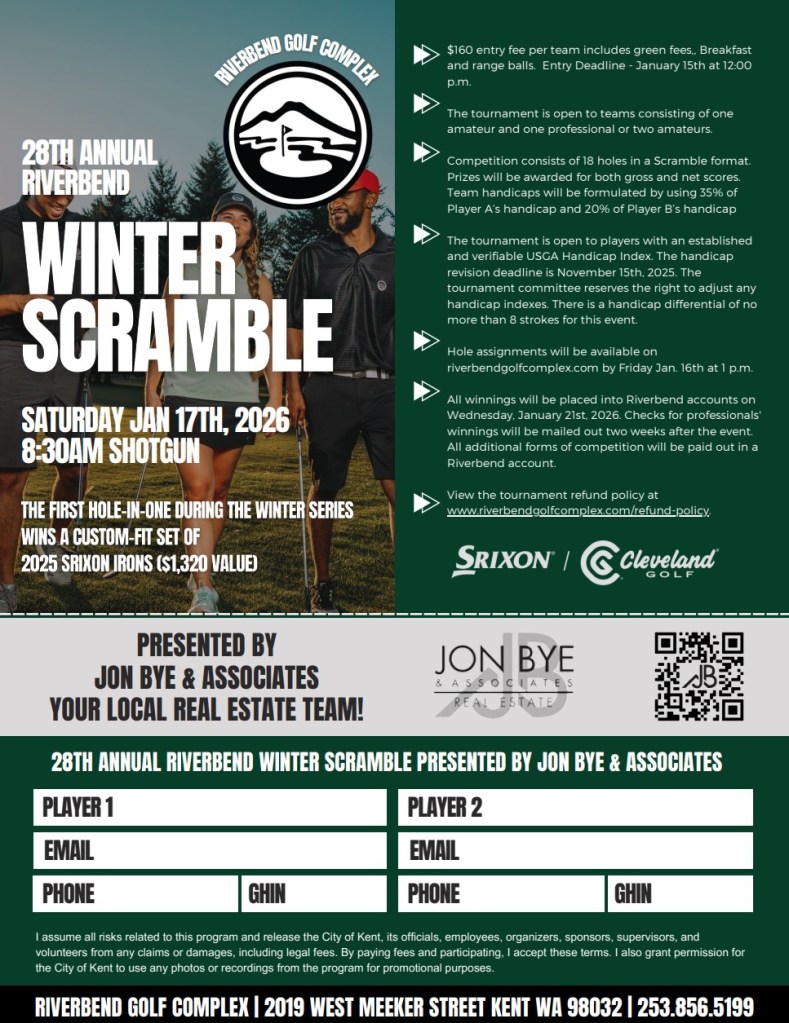 The Riverbend Golf Complex is owned and operated by the City of Kent. The golf complex is a public facility and consists of a Championship 18 Hole Golf Course, Driving Range and Golf Merchandise Retail Store. The Championship 18 Hole Golf Course opened in 1989 and the Golf Division, as part of the Parks, Recreation and Community Services Department has operated the facility since 2000.