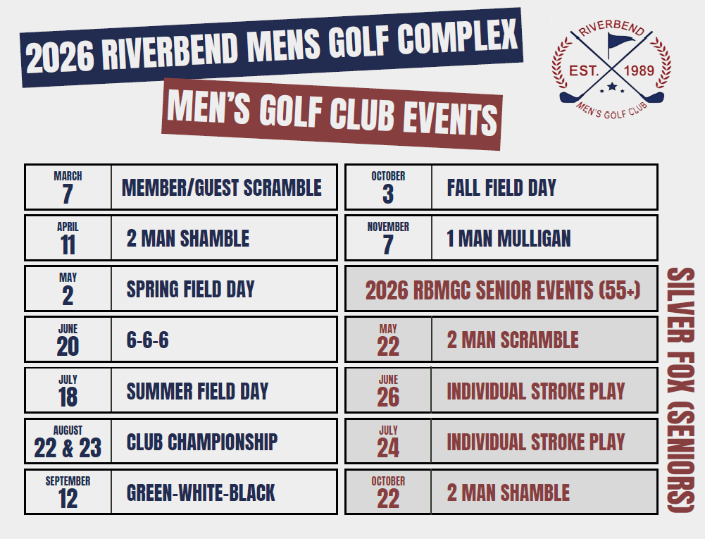 Contact the RBMGC – riverbendgolf@hotmail.com for more information