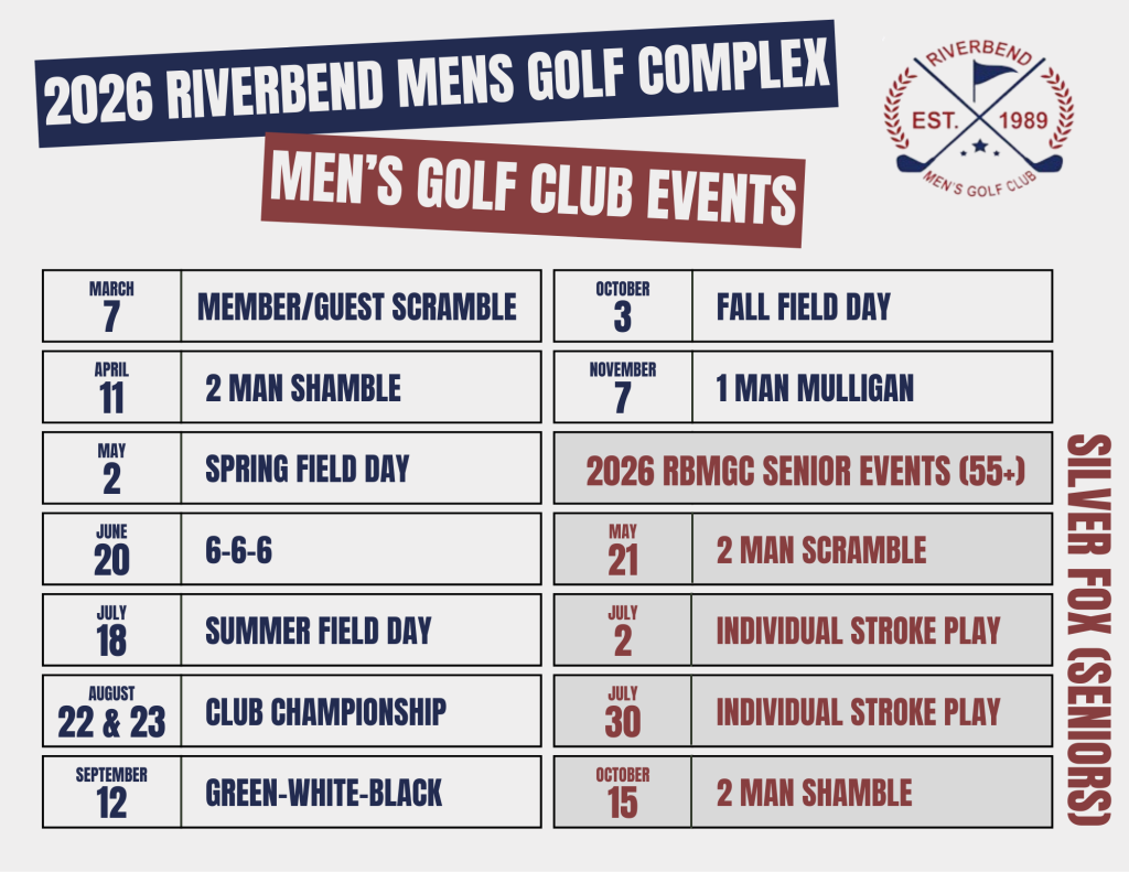 Since its founding in 1989, the Riverbend Men’s Club has grown from a small group of golfers to more than 500 members. With 11 annual events drawing 80–140 players and featuring some of the largest payouts you’ll find anywhere in the state. Members can also jump into our weekly Saturday skins games, with easy online sign-ups available.